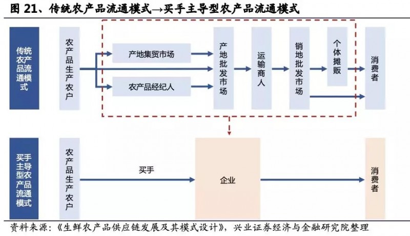 总结:通过分析国内当前的多级供应链的现状和发展历程来看,在1996年之前政府调控是影响农产品种植和流通市场的主要因素,农产品市场经历了开放、封闭再逐渐开放的过程,随着开放程度的逐渐提升,地区供需不平衡催生了一大批流通商的出现来满足消费者日益增长的需求。在这个过程中随着层级的增加,农产品由田间到餐桌的加价倍率逐渐提升。但需要明确的是,多级、繁复的供应链是当前极为分散的种植和消费体系、国内个体较低的教育和资产水平以及众多原因共同的结果,是有意义、并且适应当前国情而将在未来长期持续存在的。