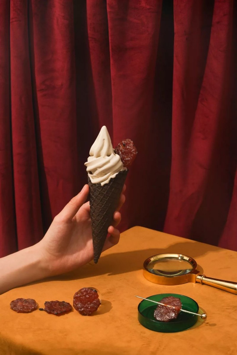 与新加坡国民品牌美珍香联名推出了新加坡限定「肉干茶王脆筒」和「肉松咸蛋黄脆筒」。在经典茶王脆筒上进行创新演绎,融合茶香与肉干咸香。茶的鲜爽中交织着肉的咸香,两种截然不同的口感碰撞出好味道。冰淇淋的丝滑搭配肉松的酥脆,解锁灵感混搭新乐趣。