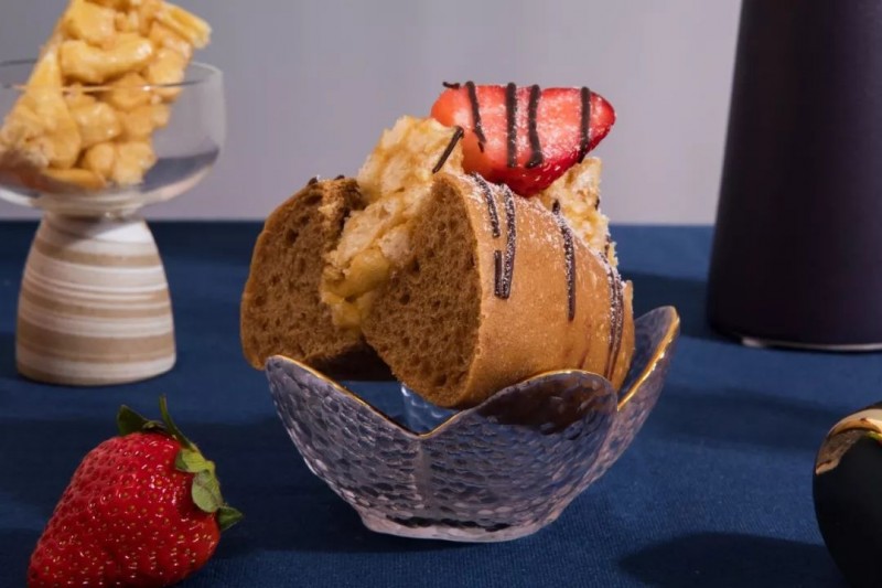 喜茶与其联名推出的「沙琪玛包」,将经典的味道重新演绎,引发一波集体回忆。浓郁咖啡软欧包,夹入大块徐福记沙琪玛,及椰浆卡仕达酱。一口咬下,纯纯的但想在口中洋溢开来,顶部的新鲜草莓带来活泼的酸甜,让回味多了一份难得的清新,重新诠释人人喜爱的童年好味。