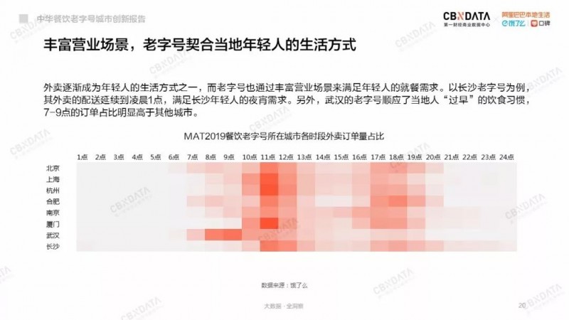 冬天吃冰,夏天吃火锅;夜里撸串,早晨喝啤酒。在对待美食相当真性情的当代人面前,“老字号”唯有“随时恭候”,用“慢慢长夜的陪伴”作为最长情的告白。老字号们通过丰富营业场景,满足了当代年轻人的生活方式以及就餐需求。以长沙老字号为例,其外卖的配送延续到凌晨,满足长沙年轻人的夜宵需求。