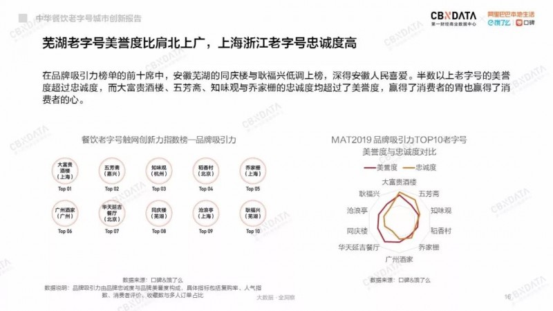 综合考量美誉度与忠诚度,在前十席中,安徽芜湖的同庆楼与耿福兴低调上榜,相比全国人民都熟知的五芳斋、知味观和稻香村等,同庆楼与耿福兴深得安徽人民喜爱。而纵观品牌吸引力榜单的TOP10能够发现,有半数老字号来自长三角地区,其中3家来自上海,另外两家来自嘉兴和杭州。不知是这些地方吃货的威力太大,还是老字号的魅力太难挡,其他地区的代表队要继续加油咯!