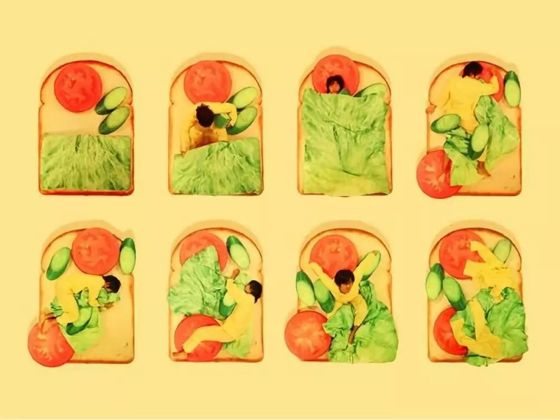 这个创意来自吐司上的馅料和睡姿所产生的关联