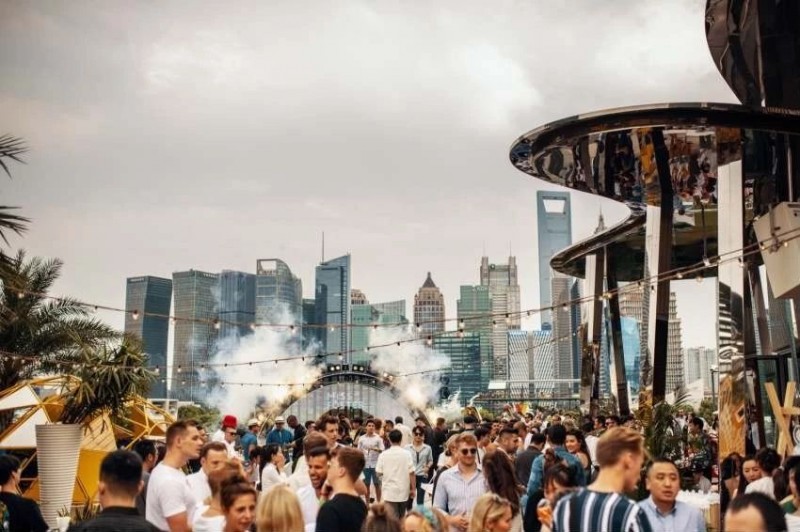 远处的日落映红了天,DJ、舞池、美酒、热闹的人群,在上海外滩W酒店的空中花园,上演着一场时尚海岛音乐派对。——“就为这一刻”正是科罗娜为消费者精心准备的“生活方式”。