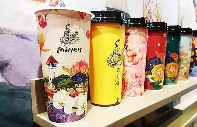最大的印象是,在台湾的茶饮市场,杯子的设计盛行国潮风。其中,以春芳号、良辰吉时等品牌的精致花式彩绘为代表。