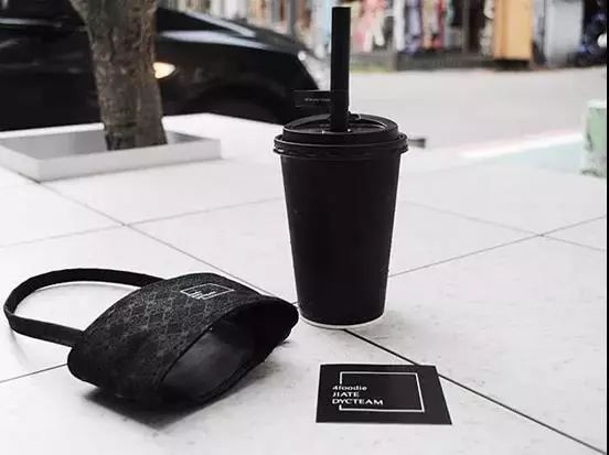 呷茶搭上联名风潮,与台湾服饰品牌DYCTEAM联名推出了设计感十足的环保杯带,推出一整组跟着搭配的全黑杯身及吸管,超级吸睛!