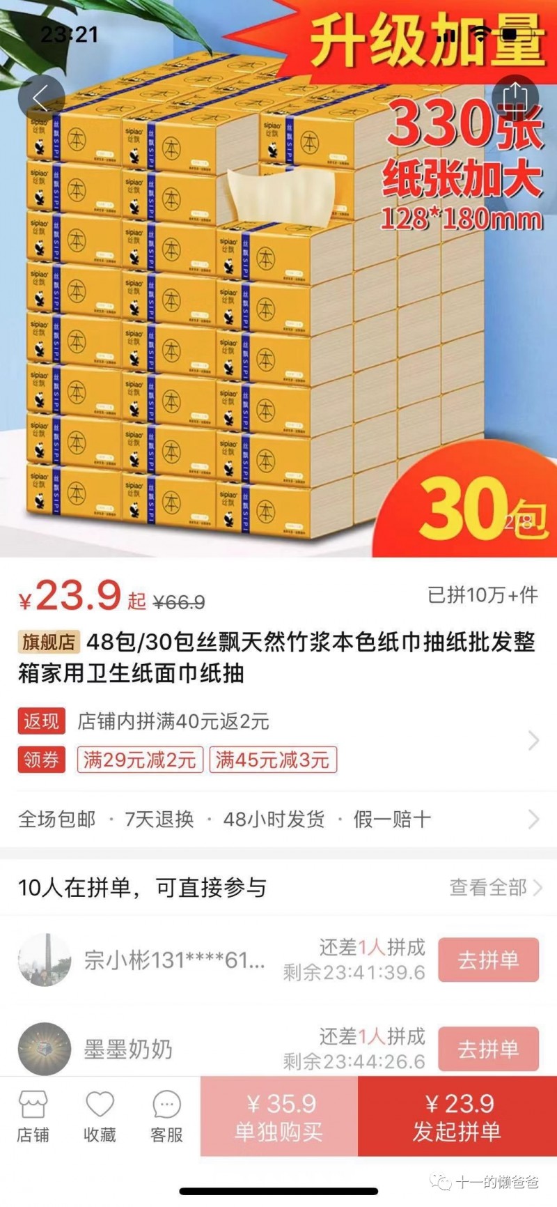 还有之前截图里看到的纸巾,在拼多多给予了流量支持后,上线第一天就卖了4万单。