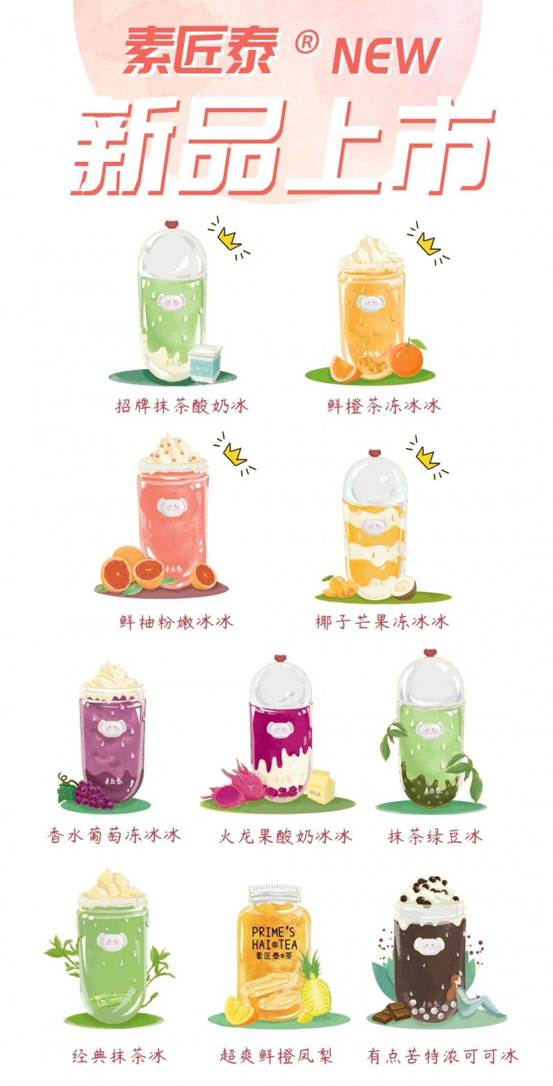 零咖啡因,精选南非开普敦线叶金雀花为基底,加入手作鲜梨冻丰富口感 ,喝了不会失眠的“甜睡呼呼茶”贴心上市。这是茶饮品牌素匠泰茶新品的宣传亮点 。区别于当下茶饮界在海报、公众号配图等宣传途径所追求的酷、炫、潮等风格。