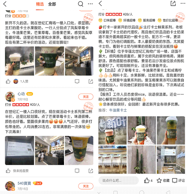 在广州、深圳,卡士果汁已经成为许多门店菜单的一部分。在大众点评中,则被多个品牌的消费者列为推荐产品。