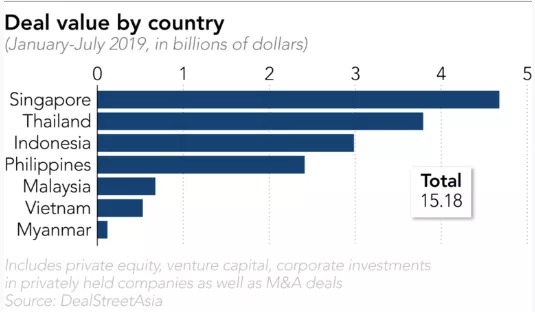 向来低调的东南亚吸引了来自全球的投资人的关注。今年1-7月份,已有 26.2亿 美元的风险投资资本确认投入东南亚包括独角兽在内的初创公司,超越 2018 全年的 21.2 亿美元。