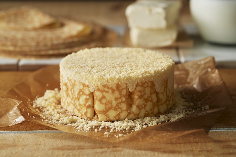 上层是法国忌廉芝士慕斯,下层是北海道牛奶芝士慕斯,入口是浓郁的牛奶味,芝士的咸香会慢慢涌上舌尖。柔滑的可丽饼皮融入其中,尝起来更有层次感,惊艳了舌尖。