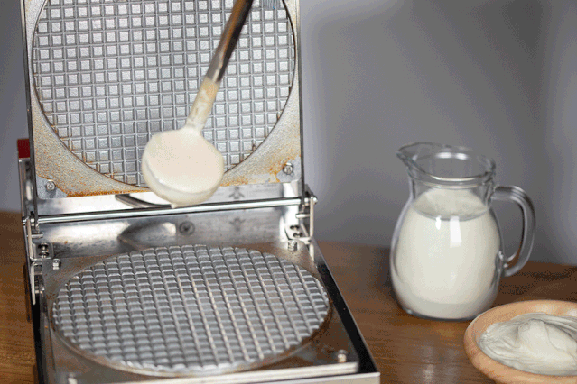 华夫筒也是手工现烤而成,清脆香甜,和浓郁甜香的冰淇淋,形成了鲜明的口感对比,叫人欲罢不能。