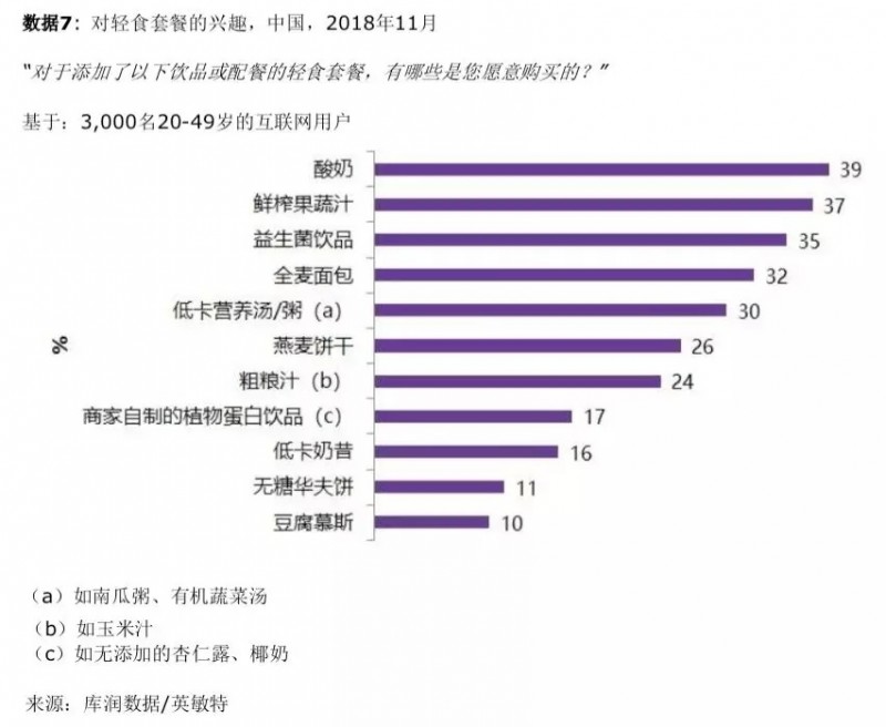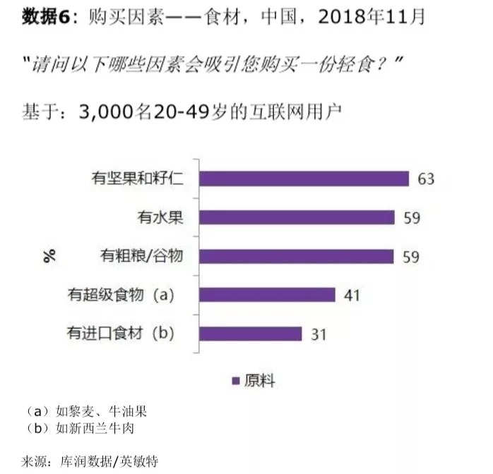 越来越多消费者正关注健康食品和饮料,其中许多人开始阅读产品标签和菜单上的菜品描述以获取营养信息。根据英敏特的“中国餐饮报告白皮书2017”,80后和90后选择餐食时会关注效率和健康。