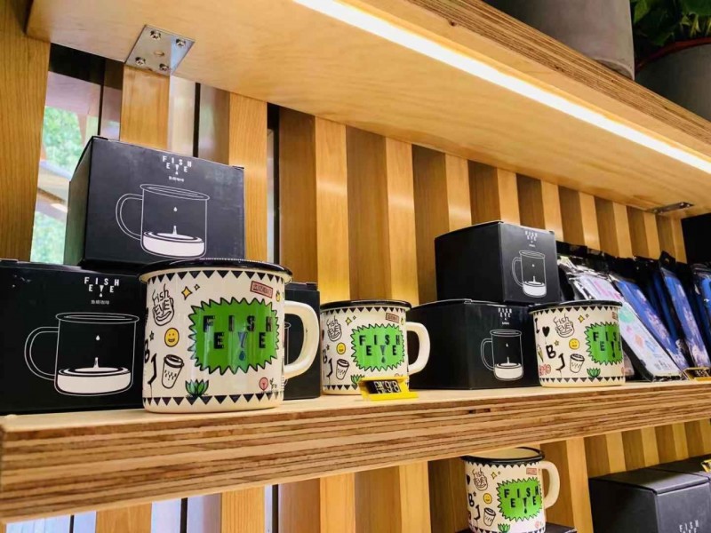 除此之外,fisheye还售卖多款咖啡豆、挂耳咖啡、冷萃咖啡,包括限定搪瓷缸、手机壳、胸针、贴纸、手冲壶、水杯、环保袋、T恤等品牌周边商品,尝试进行品牌IP变现。