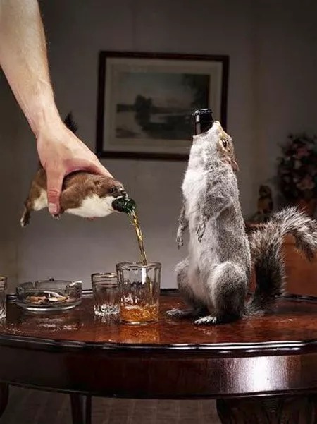 酿酒狗的“历史的终结”啤酒,这款酒的包装一度引发不少人的争议,因为它是用松鼠和浣熊动物标本做成的。不管设计者的目的是什么,光看这视觉效果,反正主编个人是比较难接受的。