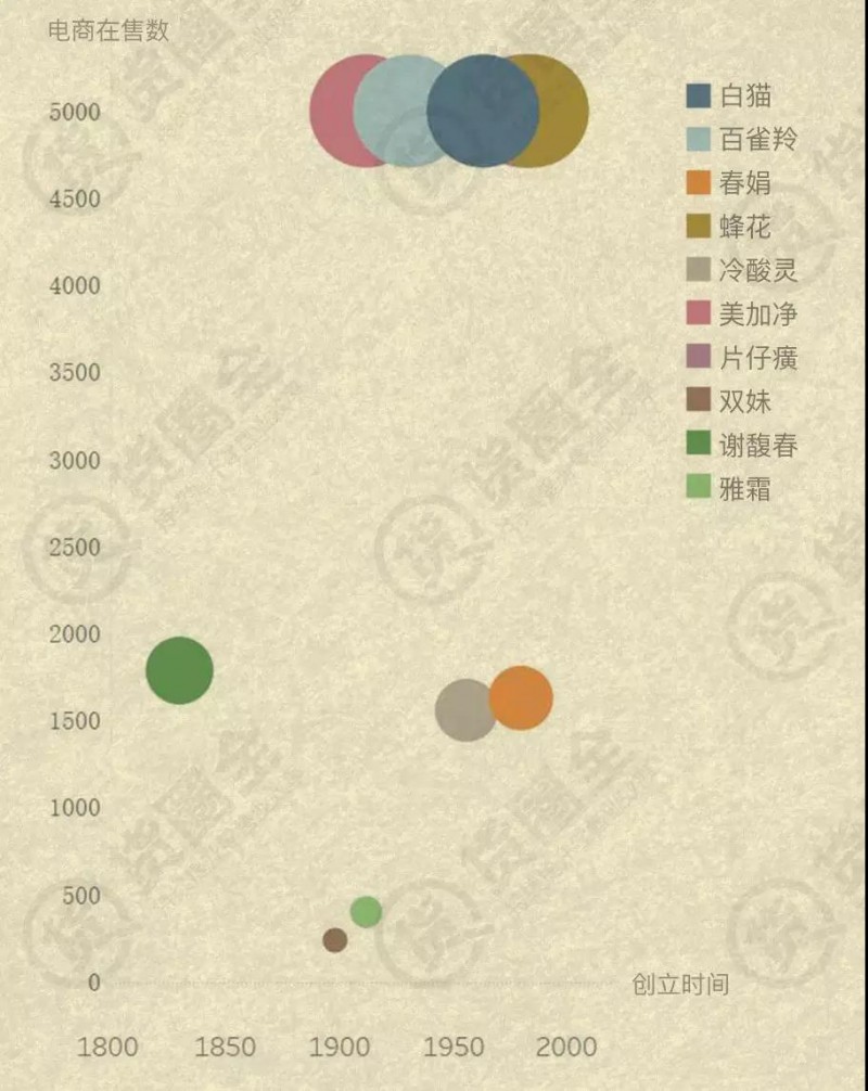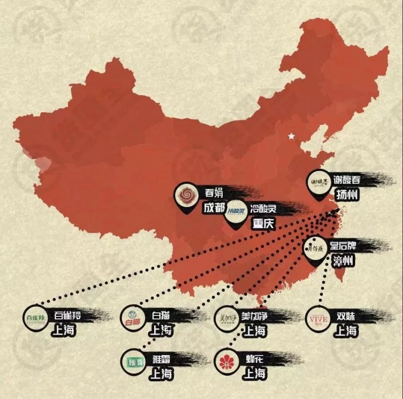 老牌日化用品集中汇聚在了上海,这里有着中国历史悠久的日化企业-上海家化。从1898年创立了双妹,到后来的友谊、雅霜等等,可以说是当年的爆款制造机了。