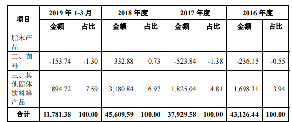 在招股书中,佳禾食品称,报告期内,公司主营业务为植脂末(俗称奶精)、咖啡及其他固体饮料等产品的研发、生产和销售。其中供应给奶茶等饮料的植脂末占到了公司收入的绝大多数。