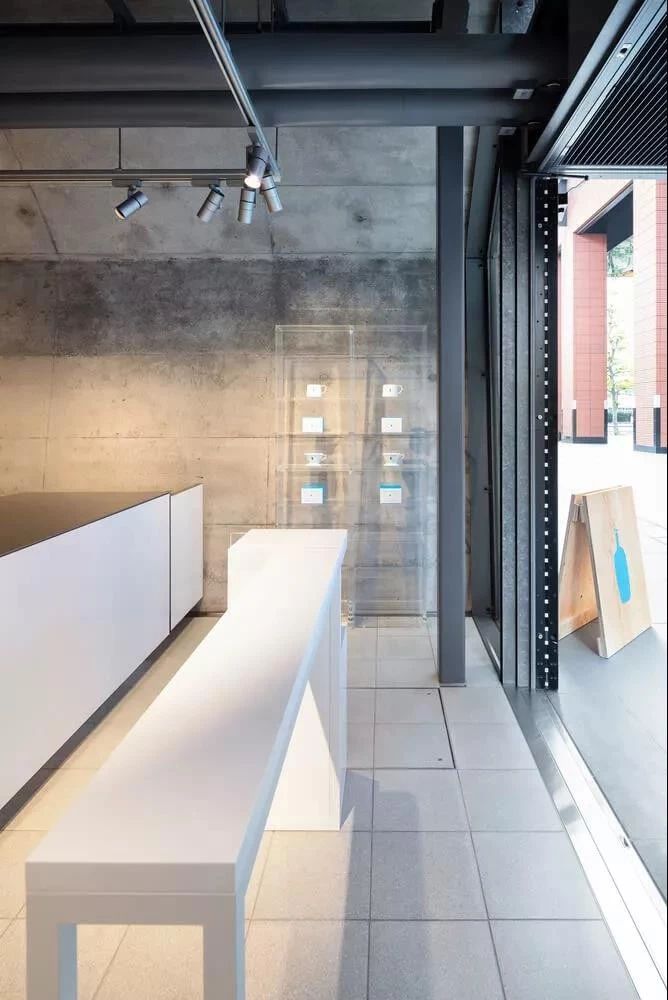 同时,作为首家外卖专门店和最小的蓝瓶咖啡店,这家门店在拆除了墙壁和天花板的饰面之后,拔高了层高,视觉上更加开阔,增加了门店的空间感。即使是25㎡的面积,也不显得过分狭小和拥挤。