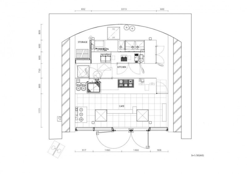 在设计时,把咖啡馆融合入这个具有悠久历史的现有环境,是设计团队的主要方向。设计团队拆除了墙壁和天花板上现有的石膏板饰面,并在空间中融入了由红砖和混凝土构成的暴露结构。