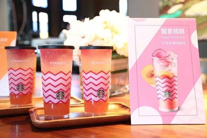 上图为瑞幸的小鹿茶,下图为星巴克的醋意桃桃