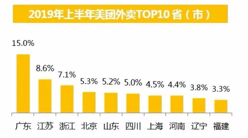 广东省外卖消费最为活跃,北上广深四城市外卖订单量占比17.6%