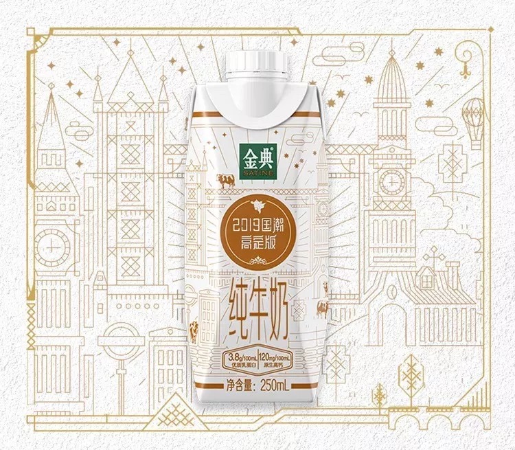原来不止时尚圈有高定,牛奶界的知名品牌伊利为旗下金典请了法国视觉艺术家 Nicolas Damiens 设计高定版包装。这位囊获戛纳广告金狮奖、One Show 广告奖的大师,在金典牛奶的整个包装设计中引用了上个世纪末在欧美风靡一时的 Art Deco 风格。优美的线条,勾勒国风新潮。