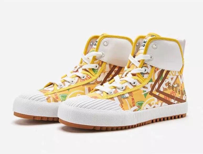 这款包装的主要图案和色调,还被运用在了飞跃鞋身上,由曾肩负路易威登、香奈儿鞋履设计的 Eric Bongiovanni 呈现。