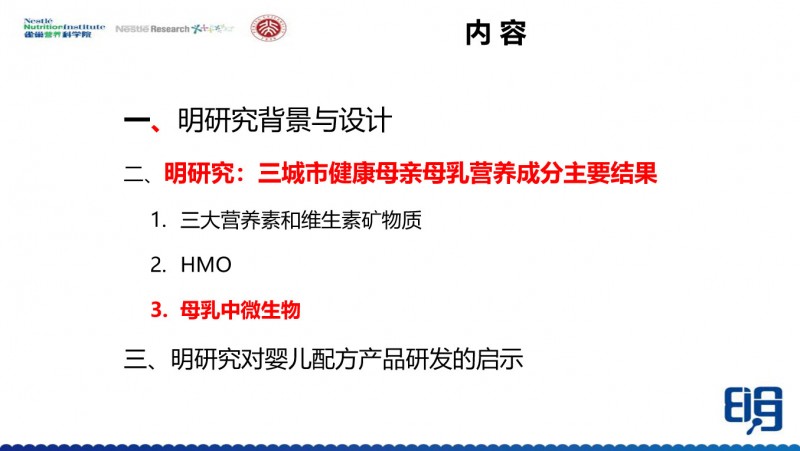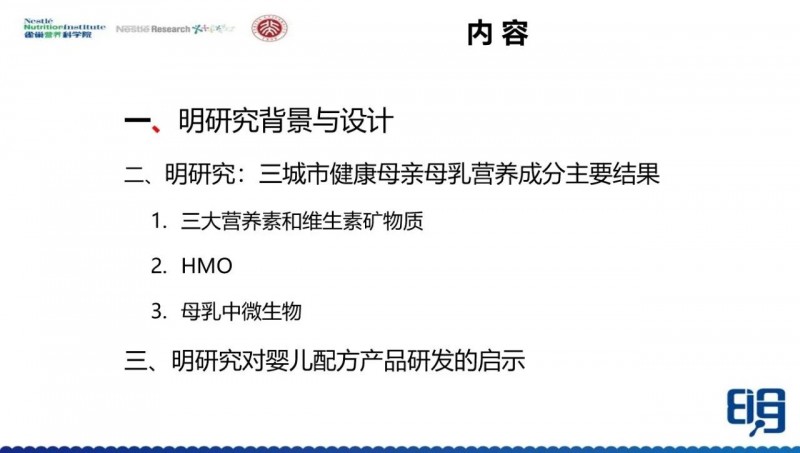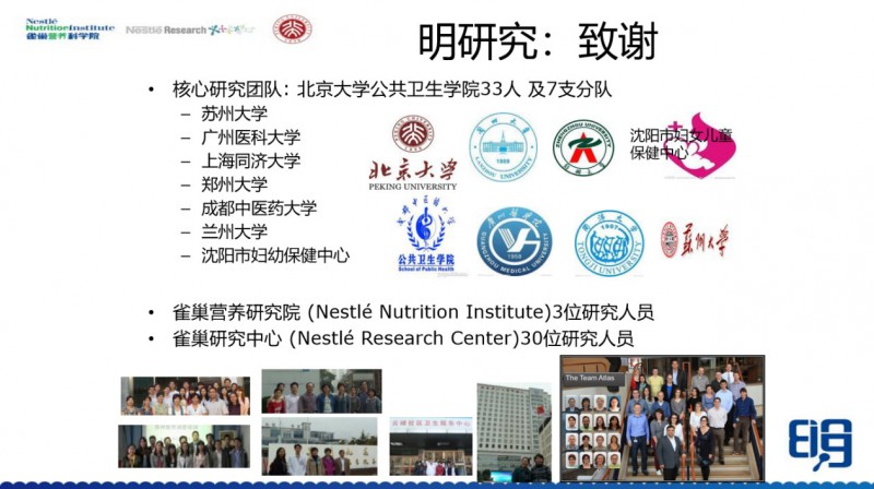 明研究的介绍到这里就结束,谢谢参与明研究的8个团队,谢谢参与的所有人,包括我们雀巢营养研究院的三位同事,雀巢瑞士研发中心的30多位研究员,都参与了这个研究。
