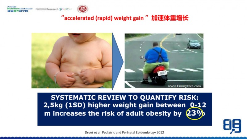 这里举个例子,有一项研究表明,在生命早期一岁以内,体重每增加2.5kg,他成年后肥胖的风险会增加23%,这说明了生命早期1000天是会影响肥胖基因的表达。