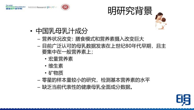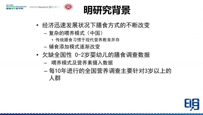 明研究就是基于这样的一个想法,由雀巢中国发起,主要是由雀巢营养科学院和雀巢研发中心,与北京大学公共卫生学院王培玉老师和张玉梅老师合作,做了这样一个研究。