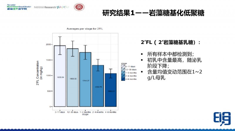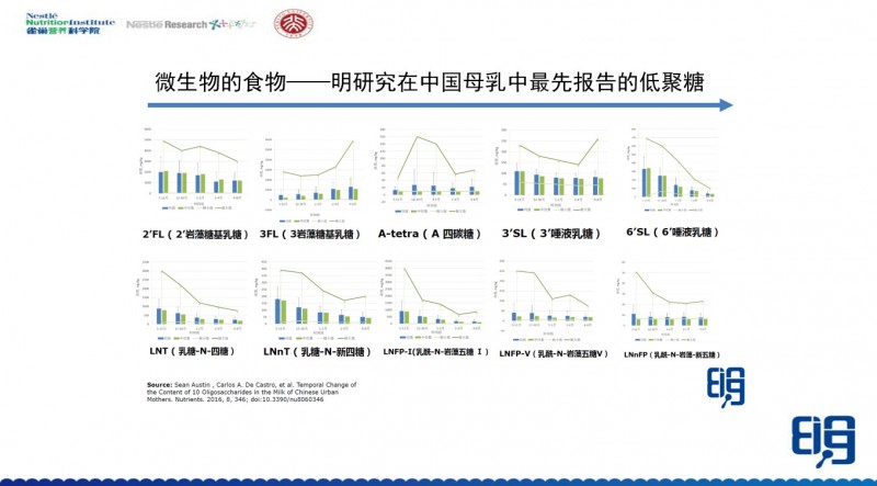 这里我想跟大家说一下,2011-2013年那段时间在明研究的时候,检测方法能测出19种HMOs,但是由于母乳的样品量不够,我们当时只做了10种。