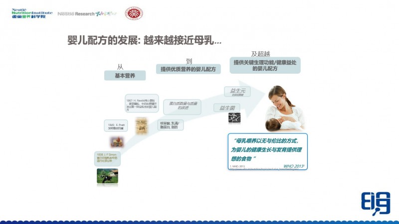 所以雀巢考虑到,如果我们能够做一些中国健康母亲的母乳分研究,那么我们所有的婴儿配方奶粉也好,我们的母婴产品也好,根据母婴1000天的膳食情况、行为情况和婴儿的生长发育情况,以及母乳营养成分相结合,应该能做出来更接近中国人需求的母婴营养产品。