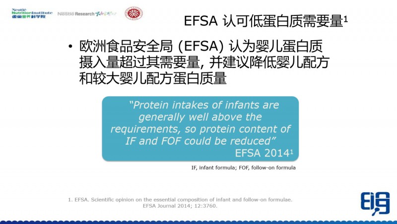 欧洲食品安全局(EFSA)已经明确认为,婴儿蛋白质的摄入量超过其需要量了,特别是现在的婴儿配方奶粉的标准里面。
