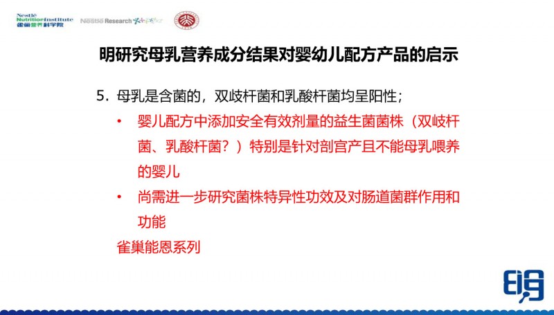 第五个启示,母乳当中是含菌的,所以我们要考虑益生菌的添加。