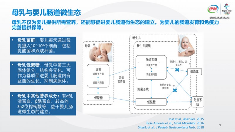 今天这个会大家主要关注的是肠道微生态,肠道健康,那么母乳与婴幼儿的肠道微生态的关系,主要表现在几个方面。