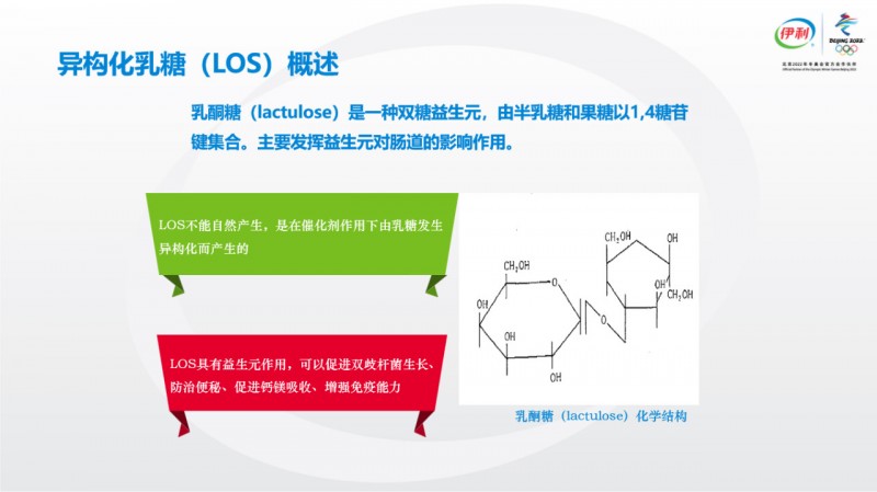 目前市售的普通配方奶粉多是添加两种益生元,GOS(低聚半乳糖)和FOS(低聚果糖)。我们的配方粉中,除了GOS和FOS以外,还加了LOS(异构化乳糖),三种益生元的添加,其实我们是在逐步向益生元多元化的这个方向上贴近。