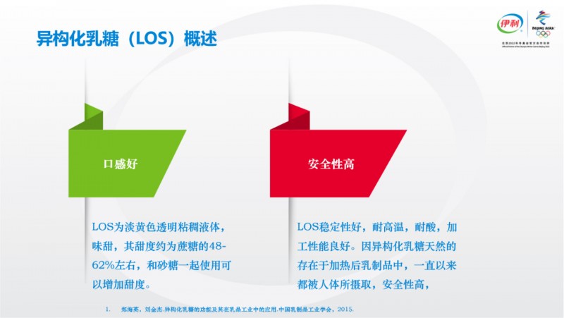 异构化乳糖有什么特点呢?第一个就是它口感比较好,另外一个是安全性,它非常稳定,而且耐高温,耐酸,加工性能比较好,所以安全性高。