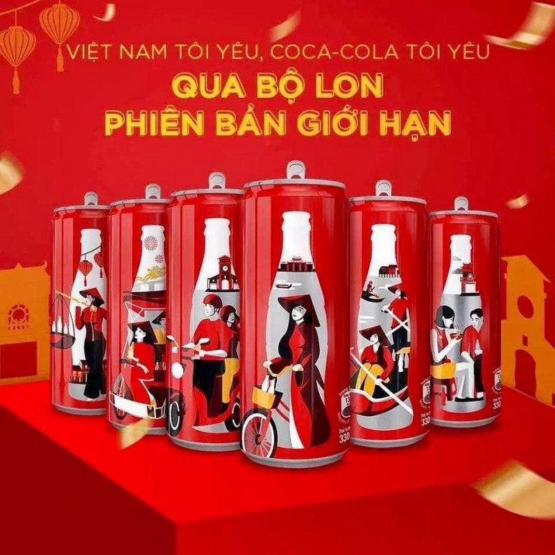今年,越南可口可乐公司就以“我爱越南,我爱可口可乐”为主题,选取了河内、顺化、岘港、会安、胡志明市和芹苴6个城市中具有代表性的场景,搭配典型的越南人民的形象,将具有越南特色的衣着、交通工具和食物展现在画面中,极富越南特色。