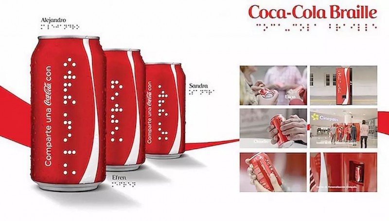 可口可乐在墨西哥和阿根廷推出印有盲文的全新罐装设计。在墨西哥,可口可乐打造了一台特殊的自动贩卖机,出售刻有盲文的罐装可乐;而在阿根廷,品牌则将知名盲人足球队 Los Murciélagos 的成员姓名刻在瓶身上送给他们。这一波人性化的操作,确实让人内心暖暖。