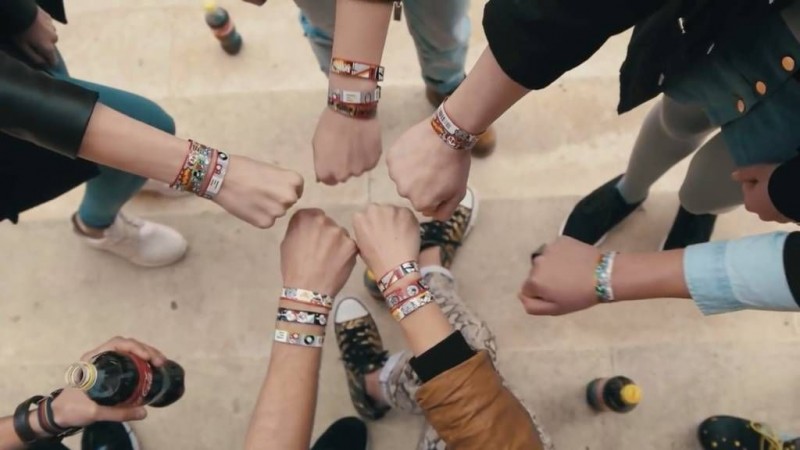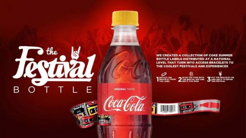 可口可乐在罗马尼亚的一个音乐节上推出了这款“音乐节手链瓶”。他们在瓶子上印上一条带状的图案。消费者购买可乐后,可以撕下来绑手上做手环,同时也是作为进入音乐节的凭据。手链上有个条形码,扫码还有可能会中奖哟。不得不说可口可乐这波操作真是666啊!