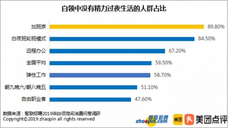 最近智联招聘与美团点评共同发布了《2019年中国白领夜间消费调研报告》,记录深夜江湖人的夜生活质量和夜间消费现状。