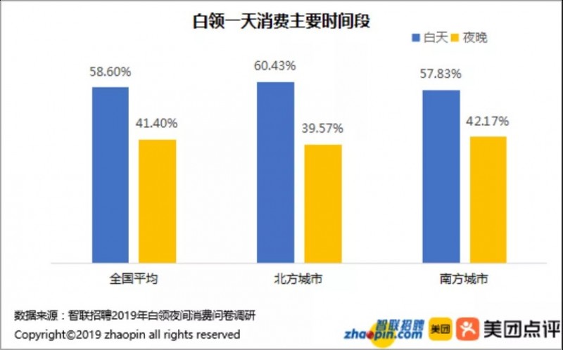 比如说北方城市的白领消费,白天消费时段几乎是晚上的1.5倍;而在南方城市,两者相差15%左右。