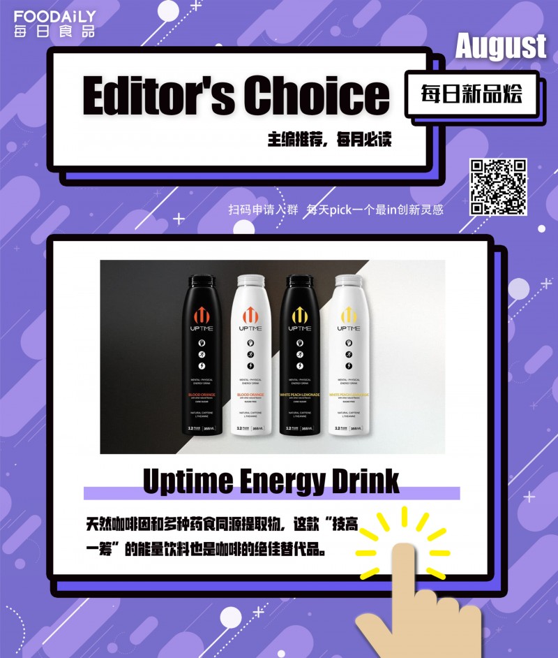 “Editor's Choice”是由Foodaily主编团队在每月分享的全球新品中精选出的一款最具创新力和值得关注的产品,对其品牌和产品进行深度解读与分享。8月,我们共推荐22款新品,成功入选的是美国能量饮料品牌Uptime Energy推出的一款气泡型能量饮料,采用天然咖啡因和多种药食同源提取物精心配制,提供更平衡的能量。一起来看看吧!