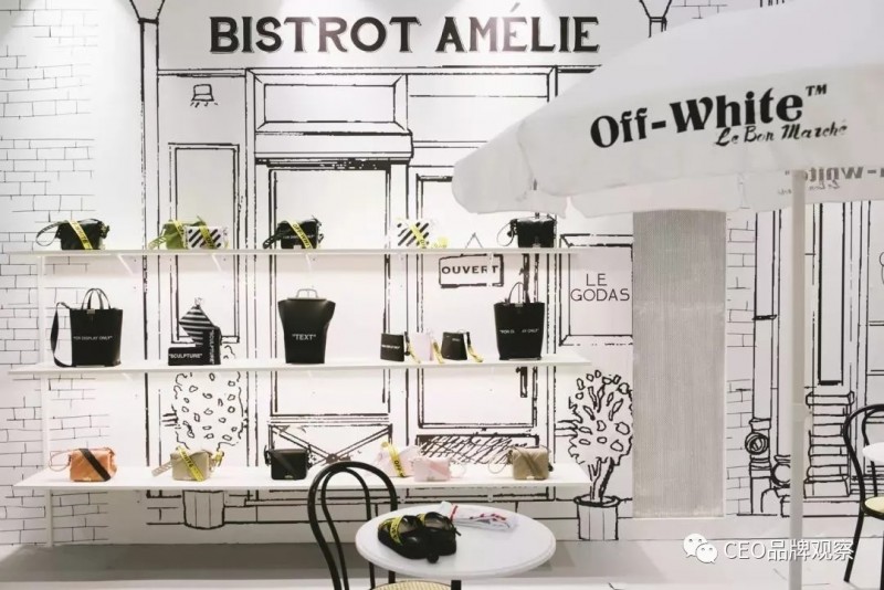 例如OFF-WHITE 也曾在巴黎 Le BonMarché 百货公司内开了一个期间限定咖啡馆,装修风格甚至被称为网红咖啡馆的榜样,除了限量的商品,还有推出了抹茶味爆米花和名为Blue Magic蓝色水,与知名设计师合作推出具有收藏价值的饮料。