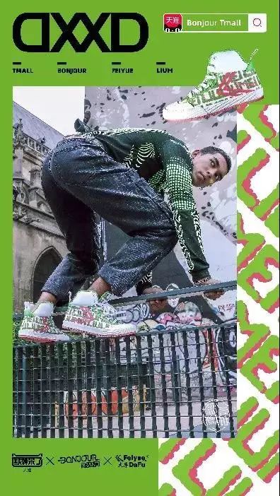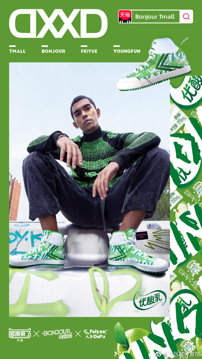 溜溜梅与飞跃联名鞋的海报可以说是很“皮”了。