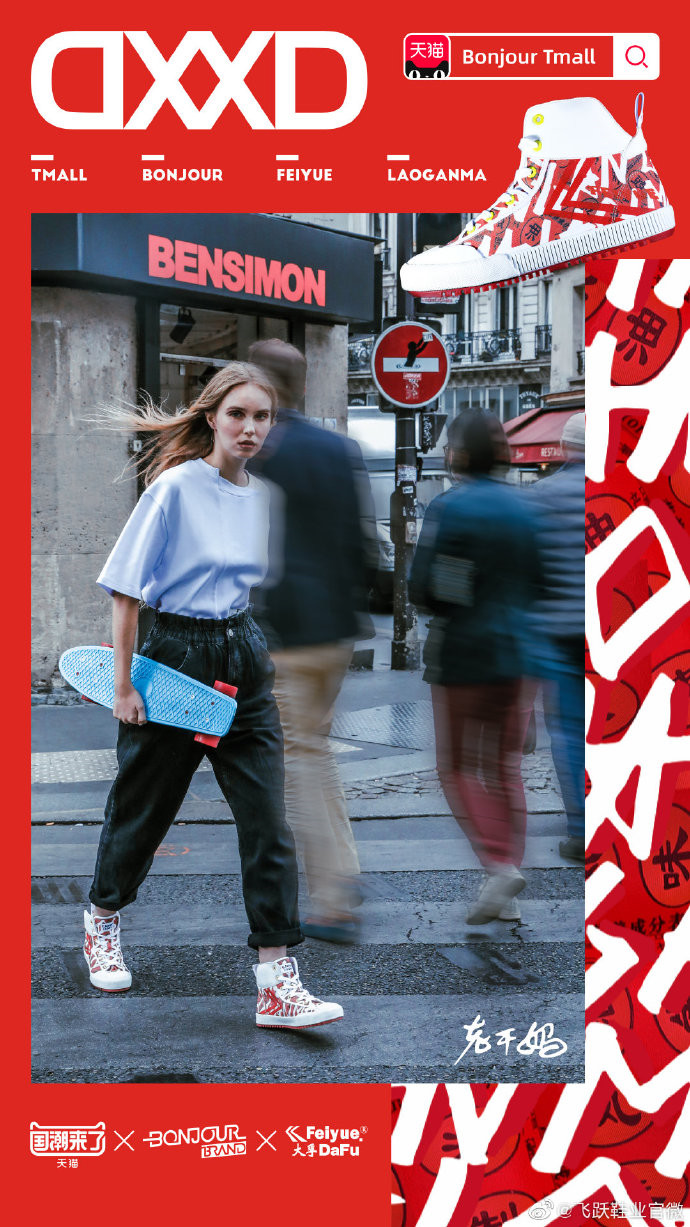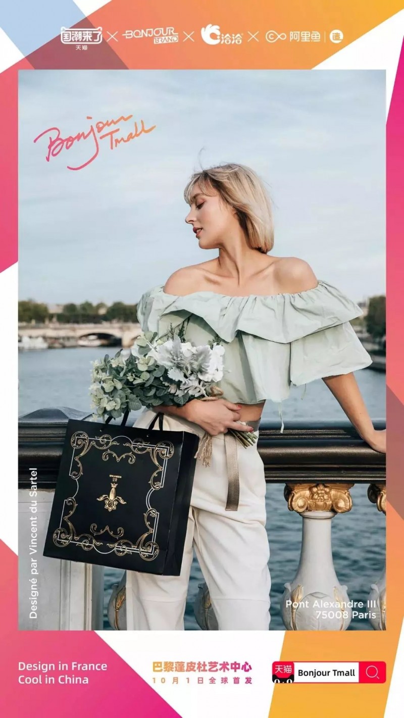 本号注意到,在10月1日——新中国成立70周年华诞当天,一场由天猫国潮来了与Bonjour Brand共同发起的中法共创新品大秀Bonjour Tmall Event在法国巴黎正式亮相,推动国潮走向世界时尚舞台,在现当代艺术最高殿堂的蓬皮杜艺术中心献礼国庆。这场巴黎时装周的“国潮品牌大轰趴”荟聚了30多个国货品牌和法国设计师们共创超150件跨界作品,同时天猫国潮“东鞋西渡”项目联合9家中国领军品牌推出跨界鞋履新品,引发法国逆代购潮。这场国潮史上最大规模品牌出海活动打造了还蓬皮杜艺术中心史上最大共创艺术装置,各种中法艺术创意巧妙融合呈现其中,再次向世界展示国民品牌自信和文化自信。