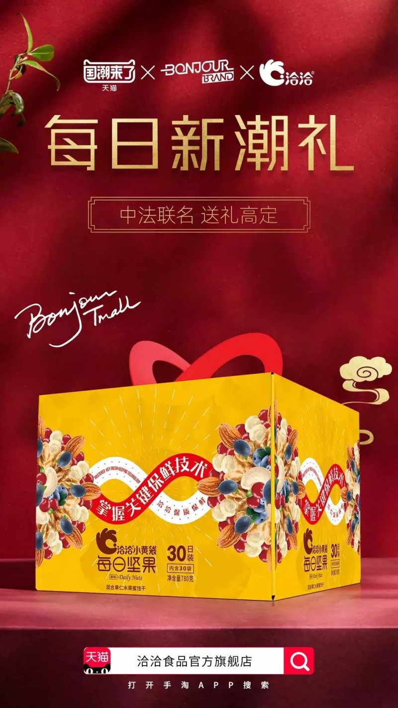 作为第一家国潮出海的坚果品牌,洽洽与LV合作设计师Vincent Du Sartel联合打造了三款高端礼盒——洽洽年货节礼盒“礼”、洽洽皇葵罐装礼盒“质”、洽洽小黄袋每日坚果礼盒“鲜”,同时推出跨界新品“东鞋西渡”飞跃联名鞋,将洽洽所代表的文化理念与法式理想生活概念相连接。