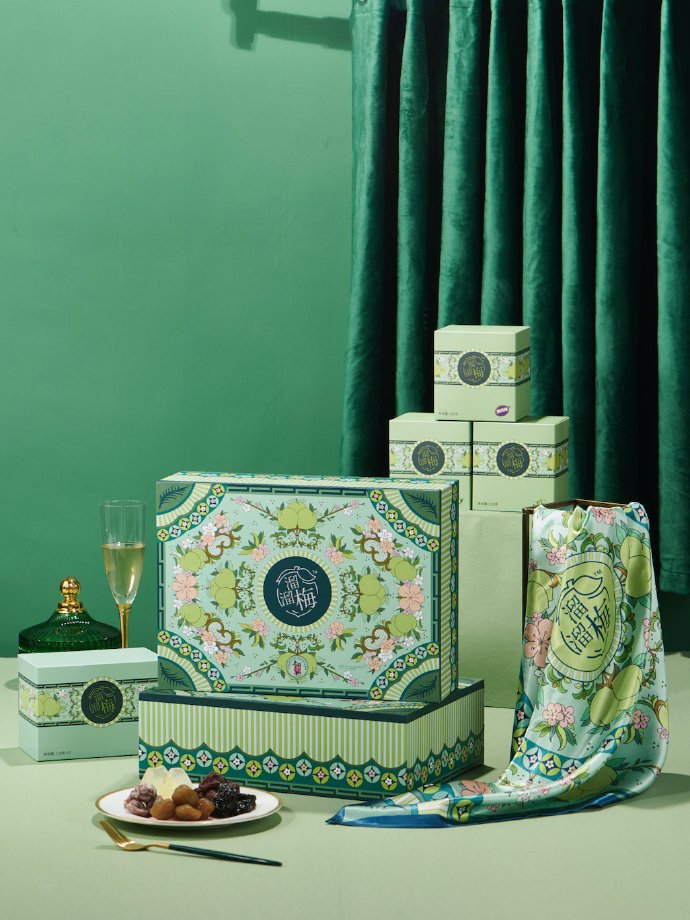 与之形成反差的是,溜溜梅这次的国潮礼盒高雅大气,兼具中式的婉约和法式的优雅,不愧为法国顶级珠宝品牌宝诗龙的合作设计师Margaux Durieux倾力打造的高定礼盒。