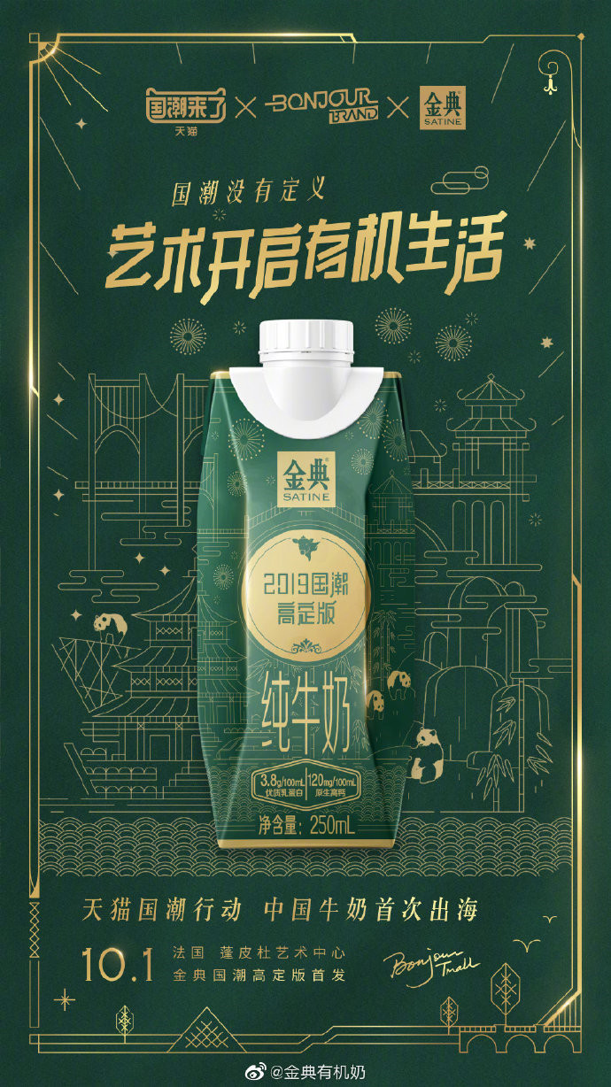 高定的牛奶,你喝过吗?一直倡导有机生活的金典有机奶这次要以“艺术开启有机生活”,由劳力士、宝格丽御用设计大师Nicolas Damiens背书打造“高定牛奶”的奢侈单品——金典娟姗牛奶定制版礼盒。此次为金典设计的定制包装采用现代审美风格的设计,分为“艺术英伦”和“中国风潮”两个版本,其中国潮高定版以注重运用有机线条的Art Deco风格为创作灵感,同时注重中国传统设计与Art Deco风格在线条、建筑、框架的有机一致性,极富欣赏性和艺术性,也更符合有机生活消费者的艺术欣赏品位。