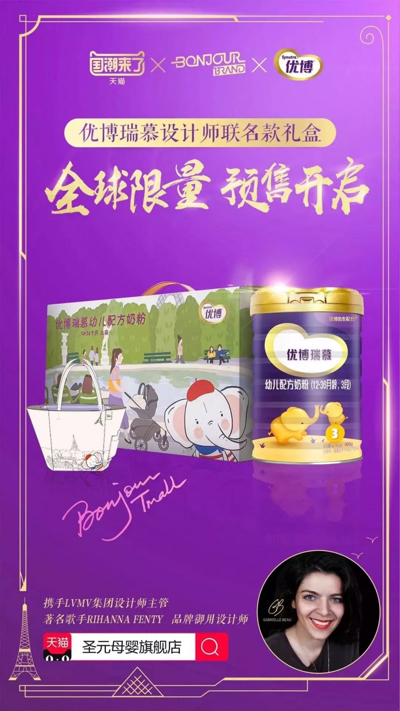 国潮的崛起,不仅反映了新生代消费者的个性化、多元化、高品质消费需求,也反映出国人对国货的信心正在逐渐恢复。中国奶粉品牌圣元优博携手LVMH集团设计师Gabrielle Beau出海推出新品,不仅有限量200份的设计师联名款圣元优博瑞慕幼儿配方奶粉高端限定礼盒,还有联名款母子包,其设计主要以埃菲尔铁塔和优博的代表性IP小象为主要设计元素,诠释圣元优博瑞慕“高端、臻稀”的品牌形象。