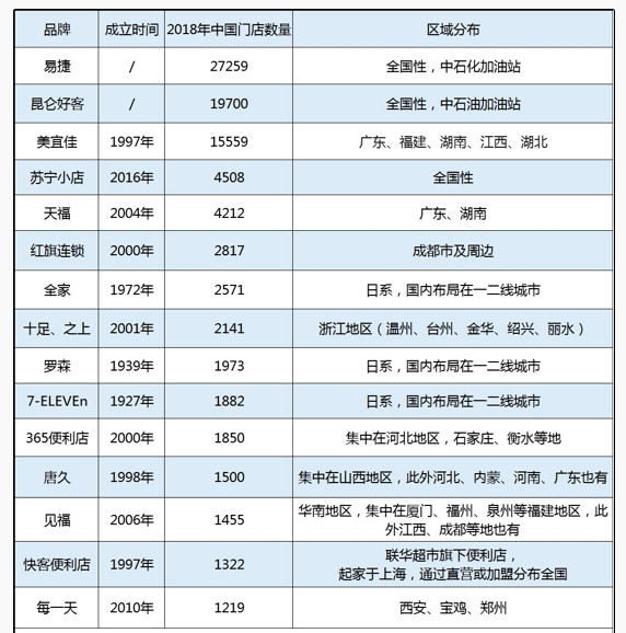 各品牌便利店数量(数据来源:CCFA)